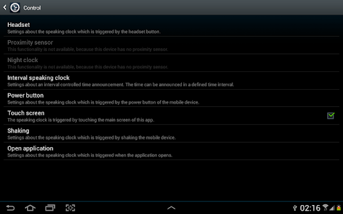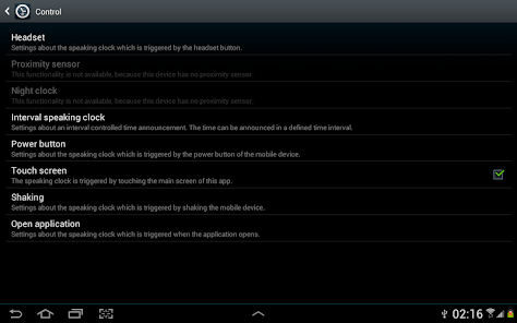 นาฬิกาพูดบอกเวลาสามารถถูกกระตุ้นให้ทำงานโดยการกดปุ่มที่หูฟัง หรือ ลูบบนมือถือเหนือพร๊อกซิมิตี้เซนเซอร์เฉพาะโหมดนาฬิกากลางคืนคุณไม่จำเป็นต้องเปิดตาแค่ลูบบนมือถือคุณก็จะได้ยินเสียงพูดบอกเวลา
