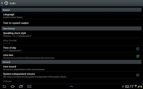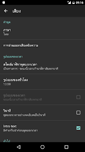 ข้อความสำคัญ ต้องมีการติดตั้ง TTS Engineเช่น Google TTS, Pico TTS, IVONA, SVOX Classic TTS โดย TTS ไม่ได้ถูกรวมอยู่ในแอป
