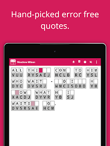 The best app for serious cryptogram / cryptoquip solvers. Designed from scratch for fast quality play, this cryptogram app allows you to concentrate on solving the puzzle. The quotes are hand-curated and carefully validated to be error free. The result is pure puzzle solving fun with no typos, ads or distractions!