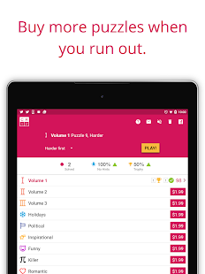 Nine more puzzle packs, each with 100 puzzles in various themes like Funny, Inspirational and Killer cryptograms are available for in-app purchase. These will provide HOURS and HOURS of fun!