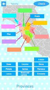 Map quiz game to learn regions and provinces of Italy.