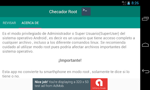 Esta app solamente menciona si tu dispositivo tiene o no el modo Root