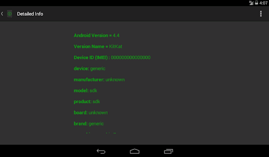 Check your Android device info in detail, this includes detailed information of all hardware, software and network. it can show device detail information in phone as well as tablets.