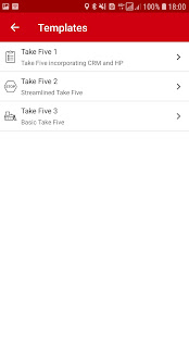 The mobile app allows the user to complete a ‘take five’ and have it uploaded to the cloud. It also automatically downloads any new content, such as new or updated ‘take five’ forms, based on configuration changes made in the dashboard app by an administrator.
