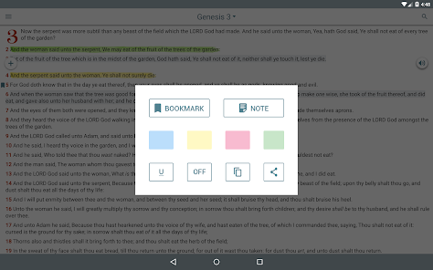 Use the favorites feature to save or bookmark your Bible study, highlight feature to make highlights in different colors, notes help you save your thoughts, conclusions.