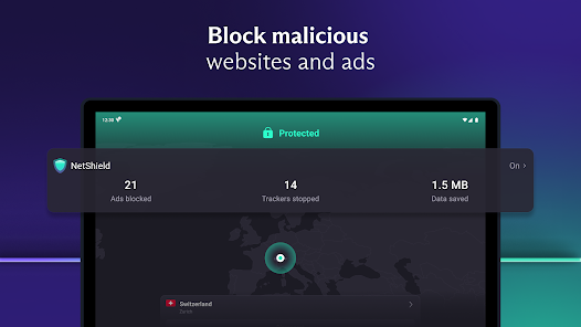 • ตัวบล็อกโฆษณา (NetShield): คุณสมบัติการกรอง DNS ที่ปกป้องคุณจากมัลแวร์ บล็อกโฆษณา และป้องกันไม่ให้โปรแกรมติดตามเว็บไซต์ติดตามคุณผ่านเว็บ