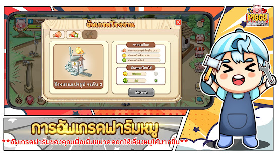 • ระบบแปรรูปหมู : คุณสามารถนำหมูที่ เลเวลถึงกำหนด เข้าโรงงานแปรรูป เพื่อนำหมู + วัตถุดิบ = ผลผลิต ที่จะได้ราคาเพิ่มมากกว่าการขายหมูปกติ เพื่อนำเงินกำไรมาใช้จ่ายภายในฟาร์มได้