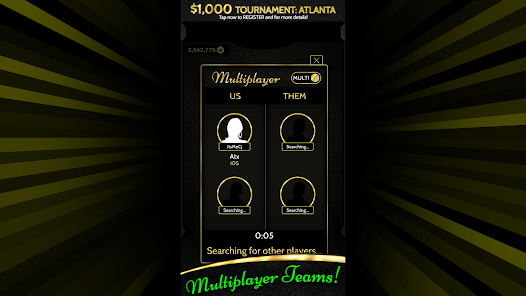 โหมดการเล่น o เชิญผู้เล่นหลายคนแบบสด (เชิญเพื่อนสูงสุด 3 คนมาเล่นกับคุณ) o ถ่ายทอดสดหลายคน (ผู้เล่นสูงสุด 4 คน) o ผู้เล่นคนเดียว (ผู้เล่นคอมพิวเตอร์ AI)