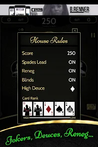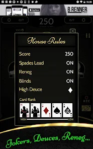 ใช่ ถูกต้อง! เล่นกับเพื่อนและครอบครัวของคุณที่บ้าน วิทยาลัย งานคืนสู่เหย้า และการสังสรรค์ในวันหยุด! เกมจอบเดียวที่มีการเรียก Jokers, Deuces และ Reneg!
