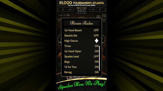 o Spades Lead (เล่นโพดำได้ทุกเมื่อที่คุณต้องการ แต่อย่าฝืน) o Blind Bidding (Go Blind 6 หรือ Blind 7 เมื่อคุณเสีย 100 แต้ม)