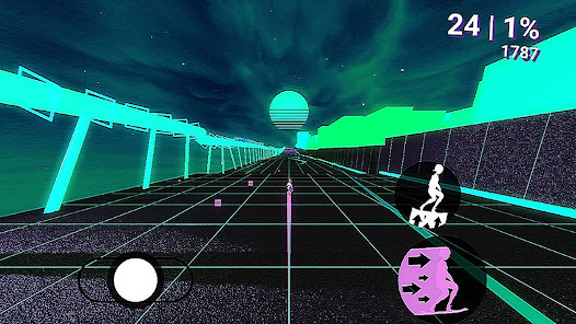 Try to reach as many points as possible in this graphic mix of neon with retro!