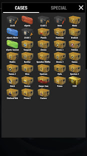 • แท็บเคส - ที่นี่คุณแกะกล่องสกินอาวุธของคุณ เพื่อเริ่มเปิดเคส แตะไอคอนทางด้านขวาแล้วเลือกลังที่คุณต้องการเปิด