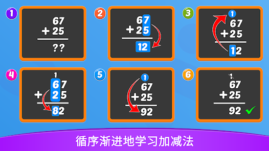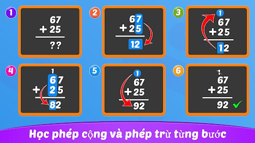 เด็กคณิตศาสตร์ช่วยให้บุตรหลานของคุณปราศจากความเครียดในการเรียนรู้และก้าวหน้าไปทีละขั้น หลังจากที่ลูกของคุณเชี่ยวชาญการบวกและการลบเลขหลักเดียวแล้ว เขาก็สามารถก้าวไปสู่เลขสองหลักและต่อไปเรื่อยๆ ได้ ตัวอย่างภาพประกอบช่วยให้แน่ใจว่าลูกของคุณแน่ใจว่าการบวกและการลบเกิดขึ้นได้อย่างไร แนวคิดขั้นสูง เช่น การเล่นข้ามเวลาจะเข้าใจได้ง่ายขึ้นเมื่อได้รับการสอนในภายหลังที่โรงเรียน