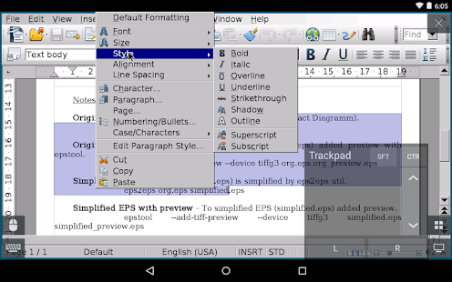 AndrOpen Office is the world's first porting of OpenOffice for Android and it's a powerful and complete office suite for OpenOffice / LibreOffice documents.