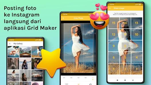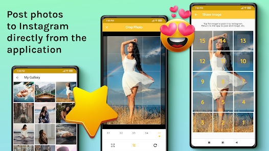 - Crop any photo into 3×1, 3×2, 3×3, 3×4, 3×5 and create 3 Sqaure, 6 Sqaure, 9 Sqaure, 12 Square and 15 Sqaure instagrid