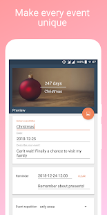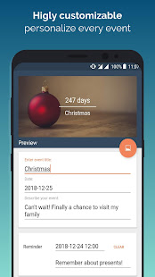 Create a highly customizable widget on your home screen and be able to count the most important days end events every day right in front of you.