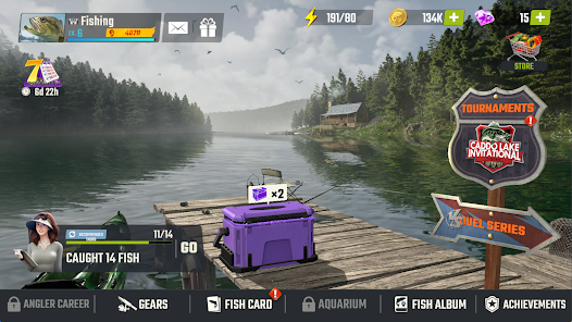 เดินทางไปยังจุดตกปลาที่สมจริง เช่น ทะเลสาบ Caddo คีย์เวสต์ อเมซอน มหาสมุทรแปซิฟิก หรือทะเลแบริ่ง จับปลาหลากหลายสายพันธุ์ตั้งแต่เล็กไปจนถึงใหญ่ เช่น ปลากะพง ปลาดุก ปลามาร์ลิน และแม้แต่ฉลามยักษ์ ปลาทูน่ายักษ์ ปลาหมึกยักษ์