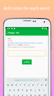 Japanese language learning app JTango N3 Tango 2000 with JLPT N3 Vocabulary from book は じ め て の 日本語 能力 試 験 N3 単 語 2000 (2000 Essential Vocabulary for the JLPT N3) (2000 tango N3).