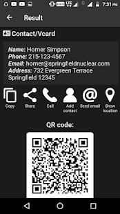 แอพ QR/Barcode Scanner สามารถสแกนและอ่าน QR Code ได้ทุกประเภทรวมถึงข้อความ, url, ผลิตภัณฑ์, รายชื่อติดต่อ, ISBN, ปฏิทิน, อีเมล, ตำแหน่ง, Wi-Fi และรูปแบบอื่น ๆ อีกมากมาย หลังจากสแกนผู้ใช้จะได้รับตัวเลือกที่เกี่ยวข้องสำหรับ QR หรือบาร์โค้ดแต่ละประเภทเท่านั้น และสามารถดำเนินการตามความเหมาะสม