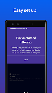 ลิ้นชักการแจ้งเตือนที่กรองแล้วของเรามีเอกลักษณ์เฉพาะ การแจ้งเตือนที่สำคัญน้อยกว่าจะไม่รบกวนคุณด้วยการสั่นหรือเสียงรบกวน พวกมันจะไม่เกะกะแถบการแจ้งเตือนของคุณ แต่คุณยังได้รับและเข้าถึงได้ด้วยการปัดอย่างรวดเร็ว