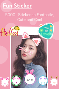 Sticker: It offers hundreds of stickers with a variety of themes. It is easy to choose the patch that matches the content of the picture. Topics include: Cat face, rabbit ears, glasses, love emotion, rosy and hundreds of other interesting stickers.