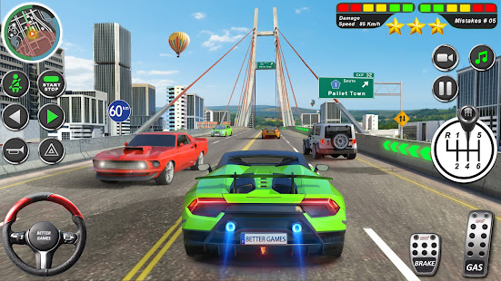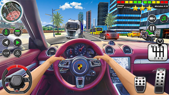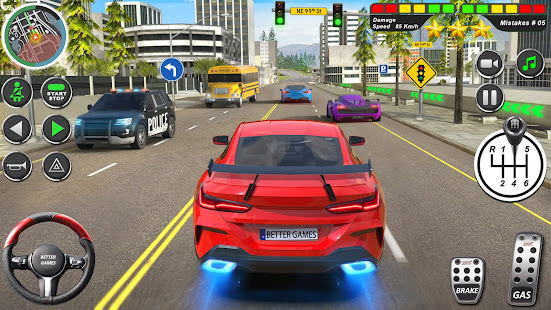 สตาร์ทเครื่องยนต์สวมเข็มขัดนิรภัยเกียร์ธรรมดาเกียร์อัตโนมัติเลนจราจรสัญญาณจราจรกฎจราจรและเรียนรู้คำแนะนำพื้นฐานอื่น ๆ ทั้งหมดและกลายเป็นนักขับมืออาชีพ ถนนที่เต็มไปด้วยผู้คนในเมืองนั้นเต็มไปด้วยยานพาหนะขนาดใหญ่ (รถโดยสารรถบรรทุก ฯลฯ ) และตำรวจจราจรกำลังทำให้แน่ใจว่าไม่มีใครผิดกฎและยังคงปลอดภัย หลังจากเกมจำลองการขับรถโรงเรียนคุณรู้ว่าการขับรถแข่งไม่ใช่ความท้าทายที่ยิ่งใหญ่ แต่การจอดรถต้นแบบเป็นความท้าทายที่ยิ่งใหญ่กว่า คุณจะขับรถสปอร์ตที่ดีที่สุดในเมืองมุมอุปสรรคและที่จอดรถด้วยความเร็วมันเป็นวิธีปฏิบัติที่ดีสำหรับคุณในการจอดรถแข่งในชีวิตจริง