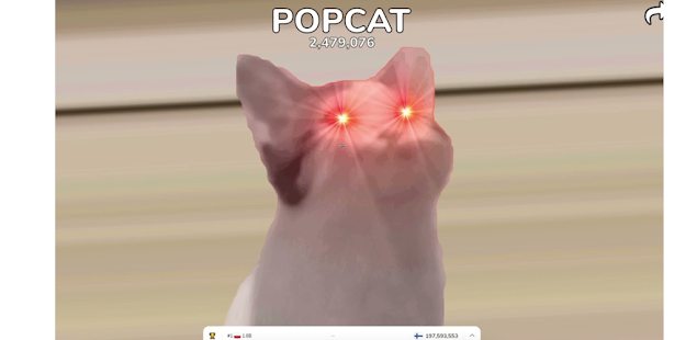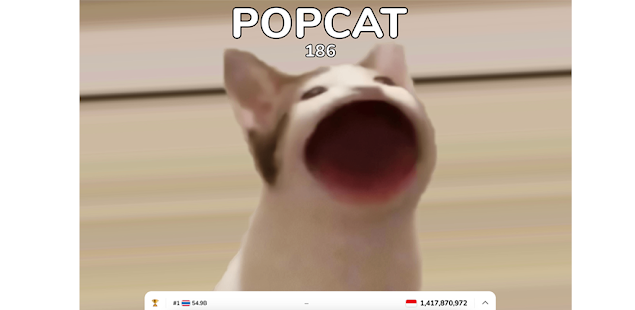 Pop Cat is a popular meme and looping video featuring a cat named Oatmeal, whose mouth opens to form a large, dramatic “O” then closes again. In the game, players click the image of a closedmouth Pop Cat to open its mouth to a popping sound effect.
