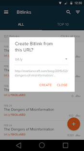Bitly for Android is fully integrated with Bitly’s desktop experience. Copy, customize, and share your links straight from your phone and view top performing links on-the-go!