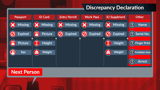 ในฐานะเจ้าหน้าที่ชายแดน คุณต้องตรวจสอบเอกสารของผู้เข้าร่วมและใช้อุปกรณ์และเครื่องมือทั้งหมดของคุณเพื่อจับกุมผู้คน เช่น ผู้ก่อการร้าย อาชญากรที่ต้องการตัว คนลักลอบขนของ และผู้โดยสารที่มีเอกสารปลอมหรือถูกขโมย