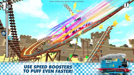 เข้าร่วมกับโทมัสและเพื่อนๆ ในการผจญภัยบนรถแข่งที่น่าตื่นเต้นครั้งนี้! แข่งหัวรถจักรหัวโปรดของคุณบนรางที่น่าทึ่ง ที่เต็มไปด้วยเส้นทางรถไฟเหาะตีลังกาสุดฉวัดเฉวียน รางสไลเดอร์ชุ่มฉ่ำ และการกระโดดที่ยิ่งใหญ่! เล่นแข่งกับหัวรถจักรคู่แข่ง หรือท้าทายให้เพื่อนมาเล่นแข่งกันในโหมด 2 ผู้เล่น! ใช้ตัวเร่งความเร็วเพื่อช่วยให้คุณแข่งขันด้วยความเร็วสูงสุด และเก็บเฟืองสีทองเพื่ออัปเกรดหัวรถจักร เร่งเครื่องไปข้างหน้าเต็มเหนี่ยว!