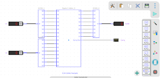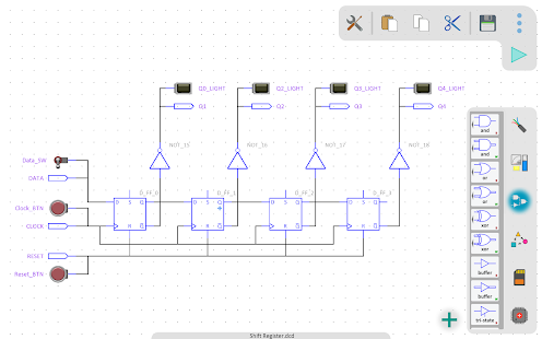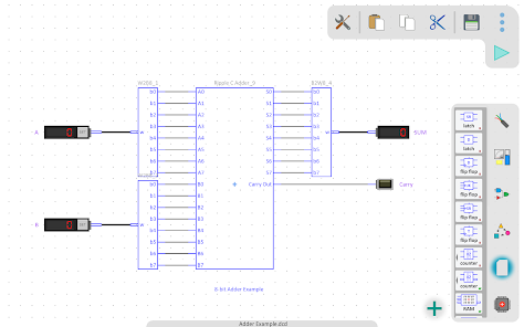 Digital Circuit Simulator ช่วยในการสร้างวงจรดิจิตอลขั้นพื้นฐานถึงซับซ้อนโดยใช้ส่วนประกอบต่างๆ เช่น ลอจิกเกต ตัวนับ ตัวถอดรหัส Flip-flops และอื่นๆ อีกมากมาย