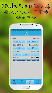 3. สามารถเลือกฟังเสียงคำศัพท์ได้ทั้ง ไทย จีน และ จีนกวางตุ้ง จากเสียงที่บันทึกโดย เจ้าของภาษา