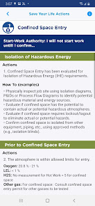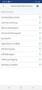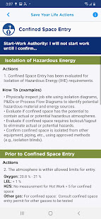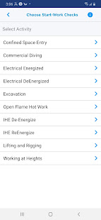 The Chevron Start Work Checks App is a mobile verification tool designed to help field workers confirm appropriate safeguards are in place and “Save Your Life Actions” are completed immediately prior to the start of high work activities. The app supports overall efforts to eliminate serious injuries and prevent work site fatalities.