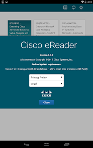 Use the Cisco eReader app to access your Cisco Learning Network Space (https://learningspace.cisco.com/) digital course materials. The digital materials available through the eReader replace the paper book materials distributed through classes taught by authorized Cisco Learning Partners. After downloading the app, log in using your Cisco.com (http://www.cisco.com/) credentials.