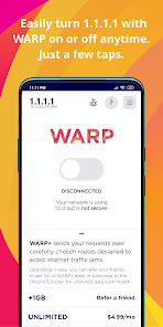 • 1.1.1.1 พร้อม WARP นั้นฟรี แต่ WARP+ เป็นฟีเจอร์ที่ต้องชำระเงินซึ่งสามารถเปิดใช้งานได้ตลอดเวลา