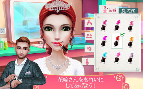 > Salon time! Make the wedding party shine, with spectacular makeup! Help the salon beautician put stunning makeup on the brides and style the grooms’ beards. Show off your amazing makeup skills!