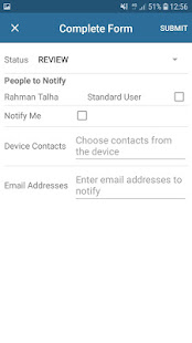 • Gives end users the option to email completed forms directly to listed Project team members, device contacts or add ad-hoc email.