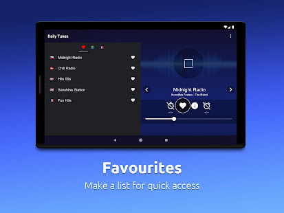 คุณสามารถทำเครื่องหมายวิทยุใดก็ได้เป็นรายการโปรดของคุณ ด้วยรายการที่เรียบง่าย คุณสามารถเรียกดูและจัดเรียงวิทยุออนไลน์ที่คุณชื่นชอบทั้งหมดได้อย่างมีประสิทธิภาพ