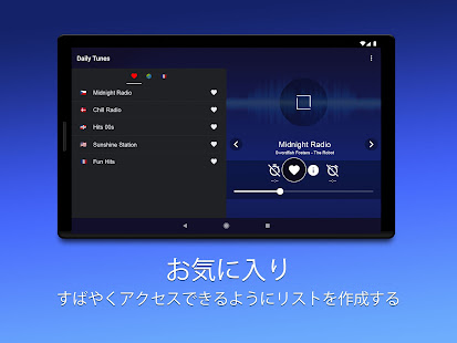 เรายินดีที่จะแนะนำคุณ Daily Tunes: All Online Radios แอปพลิเคชันที่มีอินเทอร์เฟซผู้ใช้ที่สวยงาม ขัดเกลา และตรวจสอบแล้ว ออกแบบมาสำหรับโทรศัพท์มือถือและแท็บเล็ต แอปนี้มีคุณลักษณะทั้งหมดที่คุณคาดหวัง เราเน้นความเรียบง่ายและรูปลักษณ์ที่กะทัดรัด