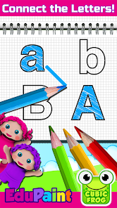 • การเรียนรู้ตัวอักษร เกมระบายสีแสนสนุกสำหรับเด็กที่ช่วยให้เด็กสามารถระบุและระบายสีตัวอักษรและเชื่อมต่อตัวพิมพ์ใหญ่กับตัวพิมพ์เล็ก