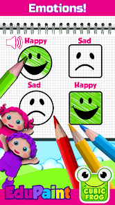อินเทอร์เฟซที่เป็นมิตรต่อเด็กวัยเตาะแตะช่วยให้เด็กๆ ในกระบวนการเรียนรู้ หน้าระบายสีสำหรับเด็กวัยหัดเดิน Cubic Frog® มีคำสั่งเสียงที่ช่วยให้ผู้เรียนตัวน้อยฟังและปฏิบัติตามคำแนะนำ มีเกมวาดภาพ 18 เกมในแอพระบายสีนี้ EduPaint ได้รับแรงบันดาลใจจากหลักสูตรการศึกษาแบบมอนเตสซอรี่ ซึ่งแนะนำเป็นอย่างยิ่งสำหรับเด็กออทิสติก และเป็นตัวเลือกที่ดีสำหรับการบำบัดคำพูดของเด็กวัยหัดเดิน สอนแนวคิดการเรียนรู้เบื้องต้นเบื้องต้นให้กับนักเรียนด้วยสมุดระบายสีสำหรับเด็กเล่มนี้!