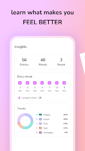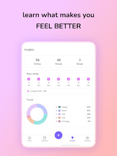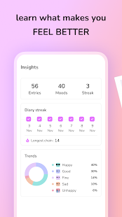 บันทึกความทรงจำของคุณใน Daily Diary และปกป้องพวกเขาจากสายตาที่อยากรู้อยากเห็นโดยใช้รหัสผ่าน ลายนิ้วมือ หรือ ID ใบหน้า จดบันทึกอารมณ์และใช้เครื่องมือติดตามอารมณ์เพื่อเรียนรู้สิ่งที่ทำให้คุณรู้สึกดีขึ้น แอพนี้สวยงามและใช้งานง่าย