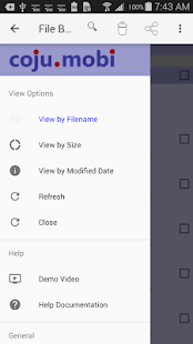 The app also features unique viewing capabilities which allow you to sort the contents in a folder by size, modified date or name. A simple sort button allows you to view contents in both ascending and descending order while displaying free space and current folder name, all the time.