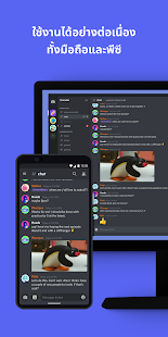 ∙ ไม่ว่าจะเล่นเกมบน PC โทรศัพท์ หรือคอนโซล คุณก็ยังพูดคุยกันบน Discord ได้ สลับไปมาระหว่างอุปกรณ์ได้ง่ายๆ และใช้เครื่องมือต่างๆ เพื่อจัดการแชทกลุ่มกับเพื่อนๆ ได้หลายแชท