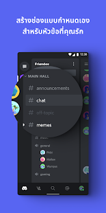 Discord ออกแบบมาสำหรับการเล่นเกม และเป็นพื้นที่ที่เหมาะสำหรับพบปะเพื่อนฝูงหรือสร้างชุมชน ปรับแต่งพื้นที่ของคุณเองและชวนเพื่อนๆ มาพูดคุยขณะเล่นเกมสุดโปรด หรือแค่สังสรรค์กันเฉยๆ ก็ได้