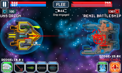 Fight off hostile ships. You can distribute power to your ship's weapons, shields or engines to gain an upper hand. But be careful, powering a system will drain power from the other two and make them weaker!