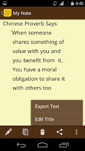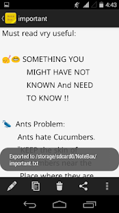 นอกจากนี้ NoteBox ช่วยให้คุณแก้ไขและบันทึกการส่งออกในรูปแบบข้อความ ปรับแต่งแบบอักษรขนาดตัวอักษร หากโทรศัพท์ของคุณไม่รองรับภาษาฮินดีจากนั้นเลือกตัวอักษรภาษาฮินดีที่มีอยู่ในการตั้งค่าและคุณสามารถอ่านและแก้ไขข้อความในภาษาฮินดีและภาษาอื่น ๆ ได้เป็นอย่างดี สร้างบันทึกโดยตรงจากข้อมูลคลิปบอร์ดไม่จำเป็นต้องวาง