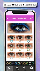 เปลี่ยนสีตาในภาพถ่ายของคุณได้ทันทีด้วยเครื่องมือแต่งหน้าตาที่ใช้งานง่าย มันเปลี่ยนสีตาและเพิ่มเลนส์สีเครื่องสำอางและอุปกรณ์เสริมสร้างเอฟเฟกต์ภาพที่น่าทึ่งในภาพถ่ายโดยไม่ต้องแต่งหน้า Eye Color Changer ให้คุณเปลี่ยนสีของเลนส์ดวงตาของคุณ! เครื่องมือแต่งหน้าตาเป็นแอพจำลองที่ง่ายมากสำหรับการเปลี่ยนสีตาที่คุณเลือก คุณสามารถเลือกอำพัน, น้ำเงิน, น้ำตาล, เทา, เขียว, น้ำตาลแดง, แดงและสีอื่น ๆ ที่คุณชื่นชอบหรือเลนส์ในรายการเลนส์ตาขนาดใหญ่มาก