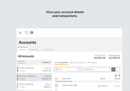 With Family Trust mobile banking, it’s more convenient than ever to access your Family Trust accounts on your Android phone or tablet.