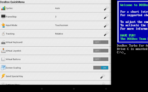ใช้บุคคลที่ 3 Android วิธีการป้อนข้อมูลใด ๆ (คีย์บอร์ด) ทดแทน ขอแนะนำให้ฟรี HackersKeyboard ซึ่งสนับสนุนความโปร่งใสปุ่มลูกศรและปุ่มฟังก์ชันหรือคุณสามารถลองแป้นพิมพ์ฟรี 'GamePad' ด้วย DosBox Turbo, ไม่มีความจำเป็นที่จะต้องจ่ายเพิ่มสำหรับปุ่มเคอร์เซอร์เสมือนจริงและ / หรือเกมแพด